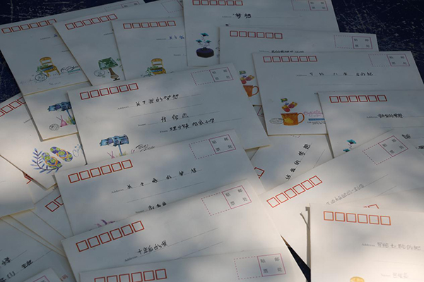 一节课过后,原本空荡的信封已填满了梦想的气息。孩子们将信纸装进信封,用封条粘好。他们的眼神中满是真诚与期待,一张小小的信纸,承载着的是大大的梦想。