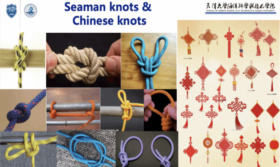除了聚焦前沿科技交流,深度的人文互鉴也是本次课程的核心主题之一。本门课程尤为注重学生思政素质的培育,通过引导学生关注绿色制造、践行可持续发展理念,强化其自然环境保护意识,进而激发学生社会责任感与专业使命感。其中,船舶绳结的相关教学内容,不仅让学生掌握船员必备的的核心救生技能,更以技能为纽带,带领学生探寻其背后的历史脉络与深厚文化传承。