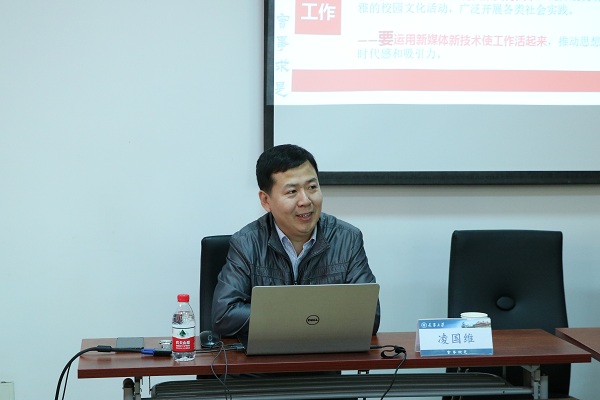 最后,凌国维以主题教育期间的深入调查研究情况为依据,总结学院在育人工作开展中取得的成效,他说“课程思政”建设使班子成员之间的配合更加默契,成为党建工作融入中心工作重要切入点;激发了教师钻研业务积极性,提升了育人能力;搭建了师生互动交流平台,育人成效开始显现。同时,凌国维提到学院育人工作仍存在工作有基础,制度不完善,制执行不到位,载体不丰富的问题,在日后工作开展中要进一步强化全过程思想引领作用,丰富全员育人的载体;完善并落实班主任工作制度,本科生导师制度和研究生导师制度;创新合作机制,拓展教学资源,构建协同育人新机制。