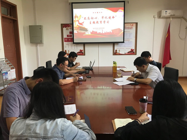 2019年9月27日,海洋学院行政教师党支部在学院党建工作室召开“不忘初心、牢记使命”主题教育集体学习研讨,会议由支部书记巩乐主持,全体党员同志参会。