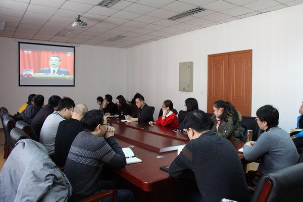 (通讯员 高荪培)2018年3月5日上午9时,十三届全国人大一次会议于北京隆重开幕,国务院总理李克强作政府工作报告。海洋学院全体师生通过报纸、网络、电视、广播等媒体收听收看政府工作报告,第一时间认真学习“两会”精神。海洋学院行政党支部全体党员和学生骨干于第八教学楼307室共同收看了十三届全国人大一次会议开幕式直播,认真学习领会大会精神,学院党总支副书记凌国维、副院长王军、巩乐与师生一同收看。