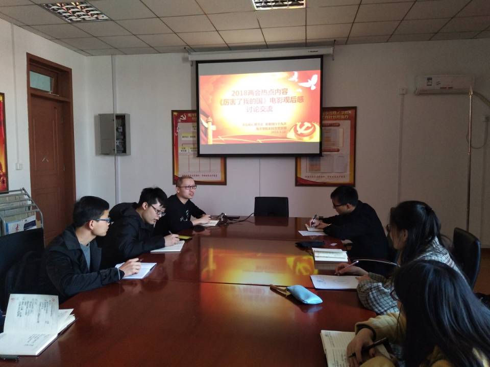 泱泱大国,卓尔不凡;小家百姓,幸福安康。观影结束,海洋学院本科生党支部结合正在进行的两会热点问题和观影感受展开热烈讨论。游画同志说,影片给她最大的感受是中国的巨变和腾飞以及中国人的变化。中国人民不再拘泥于现有技术,而是敢于做梦,敢为人先。从落后于时代到如今成为时代的领导者,中国人民精神早已为之一振,点滴中国梦也早已汇成良性循环,让当今的中国人民担着复兴重任依然奔跑得起来。党支部副书记邹博同志说,两会期间观看《厉害了,我的国》让他更直接且真实地感受到在中国共产党领导下,在中国人民的共同努力下,国家过去五年取得的进步与成就。每一个国之重器和世界之最背后,都凝聚着平凡岗位上的人民甚至几代人付出的劳动和智慧。李克强总理在政府工作报告中强调我国正在加快建设创新型国家,亲历祖国飞速发展的我们更应奋起努力,在党的领导下积极投入到中国梦的伟大实践中去。