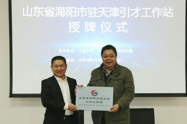 随后,翟京生、孙晓波共同签署了《关于合作建立海阳市驻天津引才工作站的协议》,孙晓波向海洋学院授牌,成立了山东省海阳市驻天津人才工作站牌。