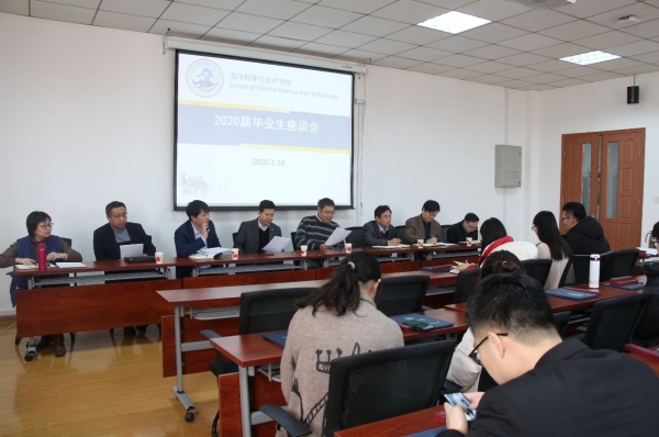 1月10日,海洋学院2020届硕士毕业生座谈会在第八教学楼319会议室召开。海洋学院院长翟京生、党委书记凌国维,党委副书记靳楠,副院长巩乐、苏荣欣、杨宏,海洋技术系主任张安民,海洋科学系主任李威出席座谈会,全体2020届硕士毕业生参加座谈会。座谈会由靳楠主持。