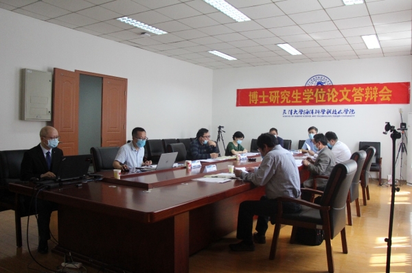 (通讯员王虎、刘永静)5月13日,天津大学海洋学院在卫津路校区第8教学楼307会议室举办首场博士学位论文答辩会,答辩人邹博是学院成立以来培养的首批博士生之一,学院对此高度重视,答辩会线上线下同时进行。
