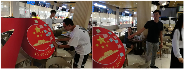 活动最后,为迎接祖国70周年华诞,现场教师写下了对祖国、学校及学院的寄语,并在学院合唱《保卫黄河》,为祖国献礼,祝愿祖国繁荣昌盛。