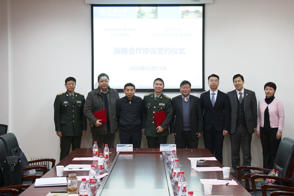 (通讯员:邢畅)2019年1月21日上午,天津大学海洋科学与技术学院与中国人民解放军61540部队战略合作协议签约仪式在8教307会议室举行,中国科学院院士杨元喜,原测绘导航局副局长杨宝峰,61540部队所长李永兴、处长金澄、天津大学副校长元英进、科研院常务副院长、军民融合技术研究院院长崔振平、海洋科学与技术学院院长翟京生、党委书记凌国维、副院长王军等出席会议。会议由凌国维主持。