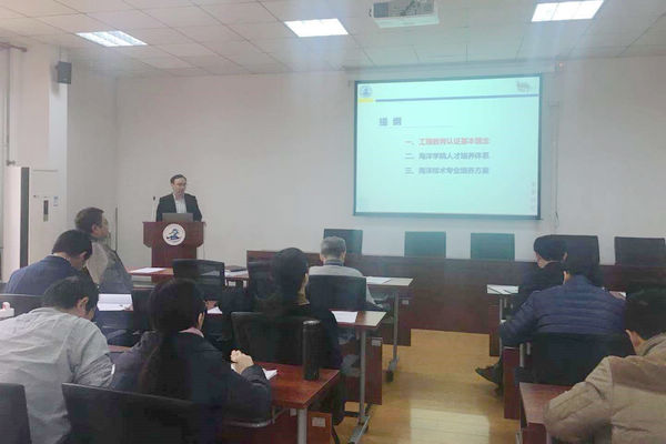 巩乐首先结合工程教育认证自评报告指导书的基本框架,介绍了工程教育认证以学生为中心的认证理念、结果导向的教学设计以及持续改进的质量保障机制。按照学校的指导意见,海洋技术专业2018年版的培养方案修订工作中参考了工程教育认证的基本理念,积极推进专业标准化建设。此外,巩乐详细讲解了学院聚焦办学定位的目标体系和聚焦课程目标的教学体系。