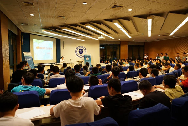 校轩研究员的演讲既生动且严肃,全场师生座无虚席,后排也挤满了加座的同学们,会场气氛井然有序,时而认真听讲记录,时而全场掌声雷动。