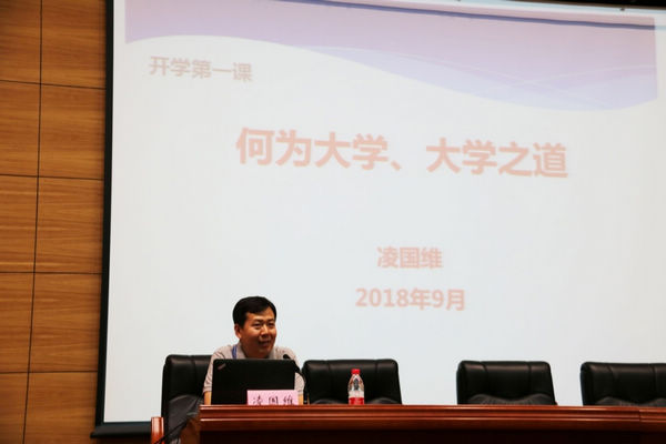 凌国维以大学的使命与发展切入,简要阐述了大学在“人才培养”“科学研究”“社会服务”“文化传承”方面作用与职能,特别是在人才培养中的独特优势。他嘱咐新生,虽然大家经过了高考、研究生考试的洗礼,成为同龄人中的佼佼者,但要不忘初心,坚守品格,担起责任,努力进取。