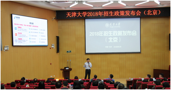 (通讯员 邢畅 蔡海)5月13日,天津大学2018年招生政策发布会(北京)在北京召开,首次在全国范围内以分省形式开启今年招生政策的发布之旅,旨在以发布会形式,让更多的目标考生、家长能够直接与学校招办、各省市招生组教师面对面交流,将我校的招生新政了解全、细、透、准。本次活动由天津大学招生办公室、海洋学院、北京招生宣传组、北京校友会共同举办,海洋学院院长翟京生,教务处副处长、招办李斌,海洋学院副院长巩乐,北京校友会副会长兼秘书长冯国馨,北京校友会副秘书长刘若沁、田佳欣、陈刚等校友出席,北京招生宣传组组长潘晓睿主持活动。
