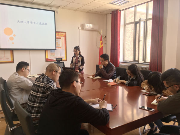 本次交流会由海洋学院党总支党务秘书王悦媛组织,兼职辅导员张婷婷作为主讲人,对天津大学学生入党流程、学生党支部工作职责两方面进行了培训与交流。围绕天津大学学生入党流程,张婷婷以“入党申请人”、“入党积极分子”、“发展对象”、“预备党员”、“中共党员”五个身份为“五个模块”,细化分解入党流程,明确支部工作职责。参加培训的支部书记、支部委员认真聆听讲解,积极提问,针对工作中的细节问题展开了热烈的讨论。