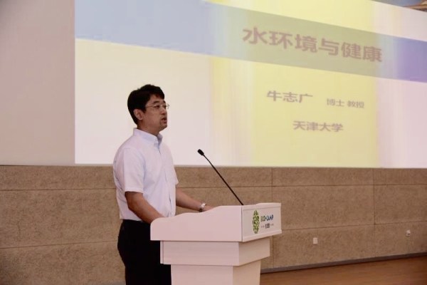 作为“六·五”世界环境日的系列活动之一,Eco-Camp(生态营)——第三届中新环境讲坛在生态城国家动漫园大厦举行,活动对2017年度中新生态城绿色创建单位进行了授牌表彰。牛志广书记受邀为获得2017年度生态城一星级绿色社区的单位授牌,并作为中方专家,以“水环境保护与健康”为主题进行了精彩的演讲。