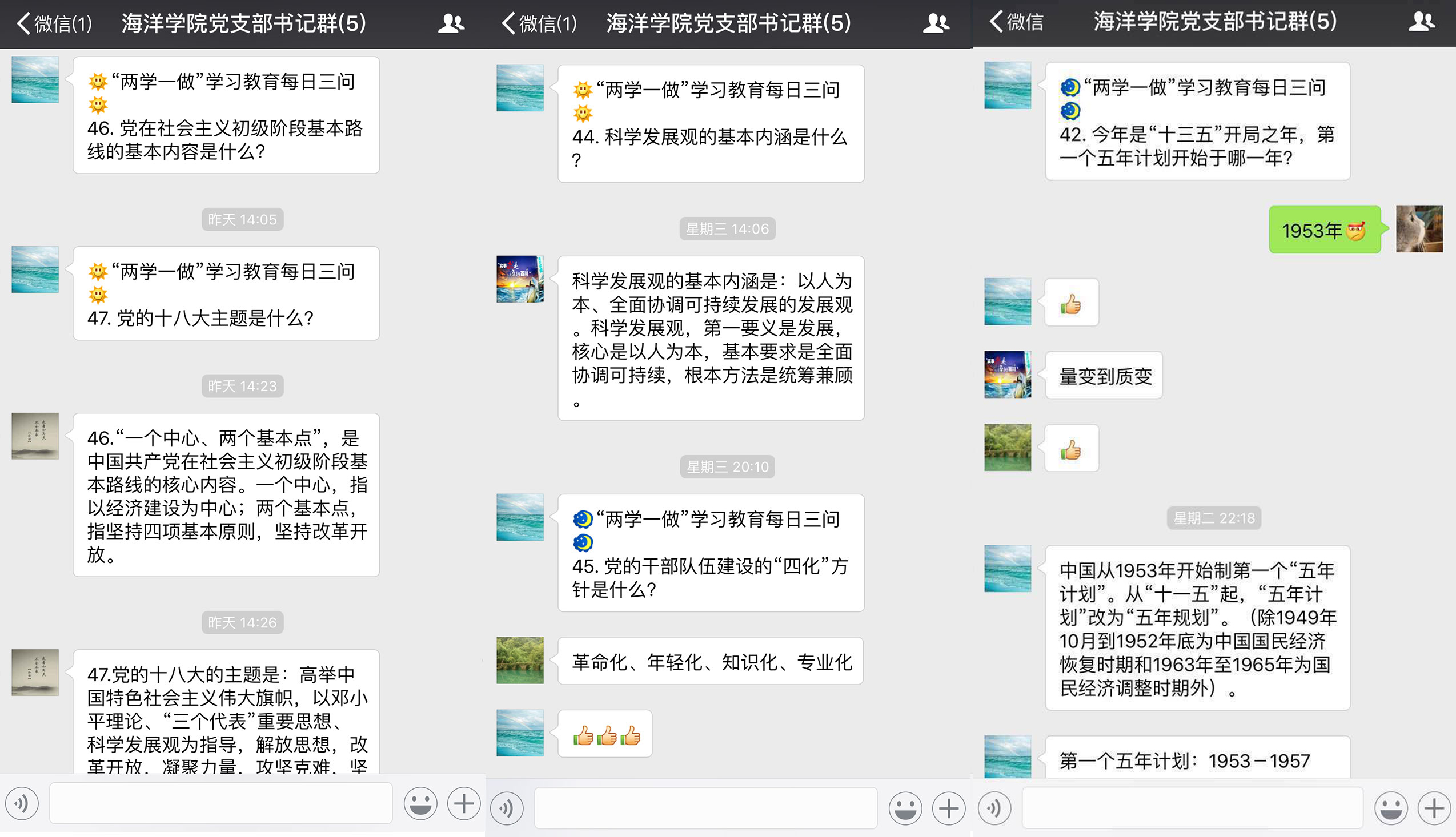 海洋学院行政党支部群“每日三问”