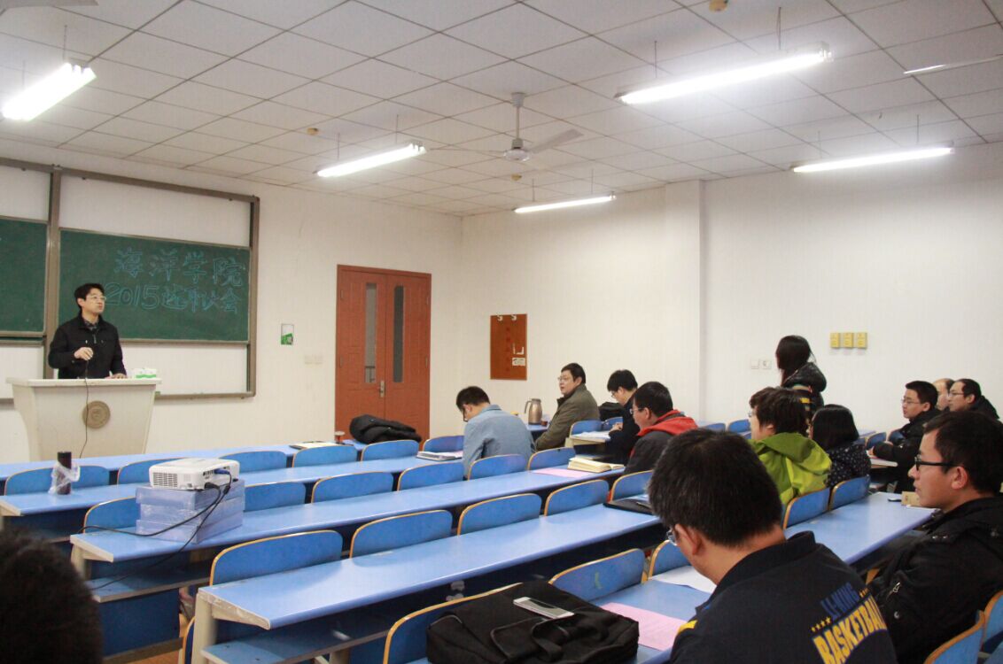 (本站讯 通讯员:赵静)12月7日上午,海洋学院2015年度年终述职大会在第8教学楼322室正式召开,院长翟京生、党总支书记牛志广出席会议。大会由赵静主持,学院全体教职工参会。