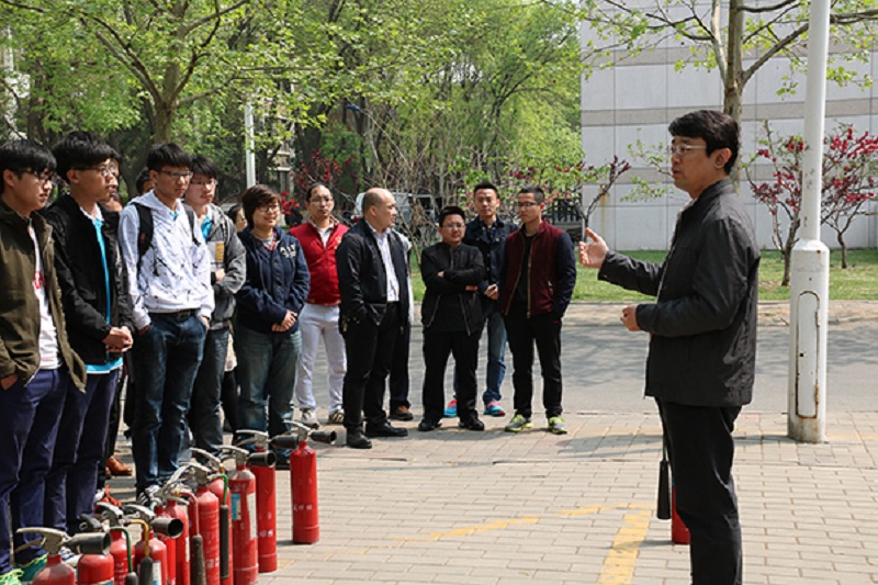 培训讲座结束后,海洋学院师生随陈老师来到“火盆灭火”演习现场进行灭火器使用方法的学习和灭火实战演习。海洋学院党总支书记牛志广在演习前发表了重要讲话,强调了消防安全工作的重要性和必要性。他指出新国家安全法中将每年的4月15日定为安全教育日,学院在安全教育日为大家开展消防安全知识培训和灭火演习表现了学院对消防安全工作的高度重视以及“以保障师生安全为首要原则”的宗旨。希望大家在培训和演习中掌握消防安全知识和灭火工具使用方法,提切实高安全防范能力。