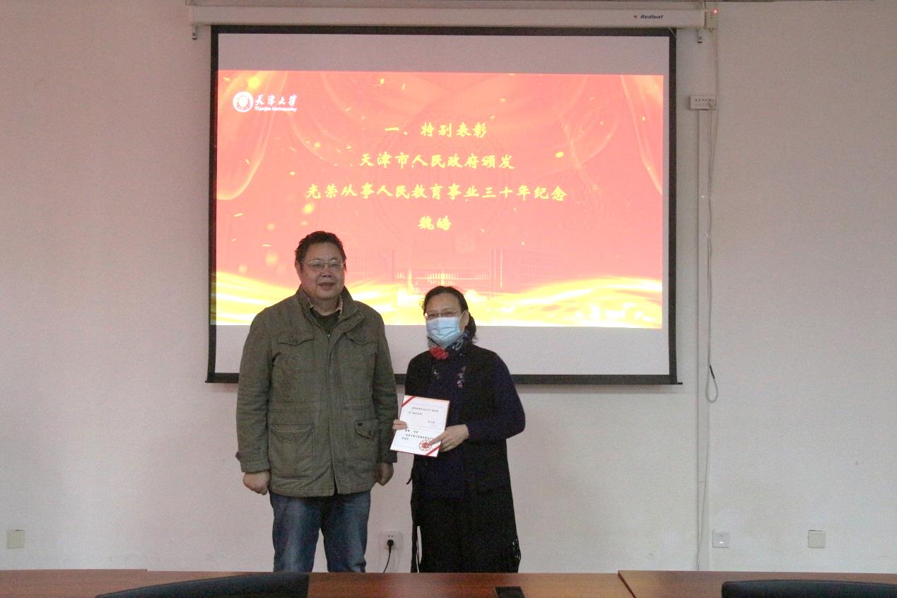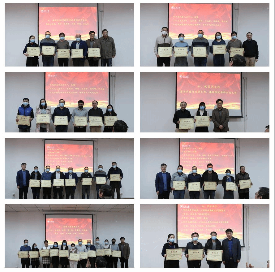 第二个环节由副书记靳楠主持,表彰在教学、科研、管理、党务、工会、后勤等各方面工作中做出突出贡献、取得突出成绩的教职工。学院领导为获奖教职员工颁发荣誉证书,获奖者纷纷表示备受鼓舞,并将继续努力,投身海洋学院各项事业建设中。
