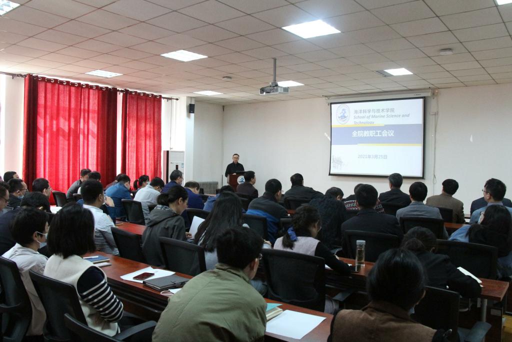 (刘永静 周亚鑫)2021年3月25日下午,海洋学院召开全院教职工会议,学院领导班子和全体教职员工参加会议,会议由副院长巩乐主持。