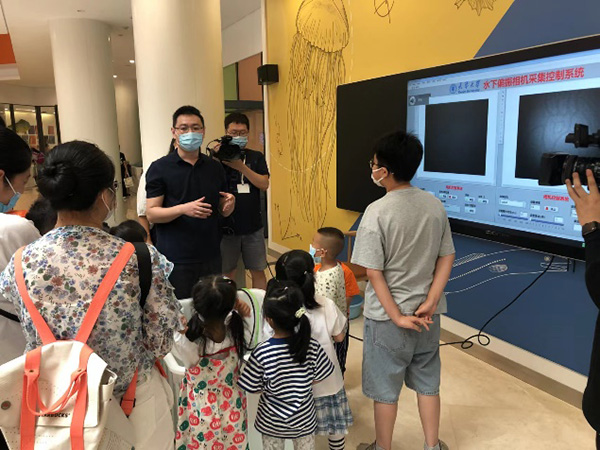 6月8日下午,国家海洋博物馆联手天津大学海洋学院举办“探索海洋”体验活动。由天津大学海洋科学与技术学院张安民教授、高邈老师指导,学生团队自主研发的无人艇“海豚-1”号在国家海洋博物馆精彩亮相,通过学生操控无人艇航行及讲解,吸引参观者驻足观看并参与互动。天津大学海洋科学与技术学院胡浩丰教授向参观者展示了水下偏振相机,通过互动使大家了解如何能够在水下看得更清晰。2021年,国家海洋博物馆与天津大学共建了海洋科技教育实践基地。此次“探索海洋”体验活动是双方依托该基地进行科普合作和宣传的重要活动。今后双方将联合开展更多海洋科普活动。