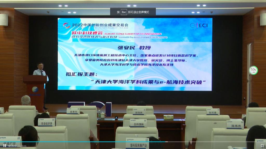 津大学海洋科学与技术学院国家重点研发计划项目首席科学家、国务院特殊津贴专家张安民教授出席了线下活动。以“天津大学海洋学科成果与e-航海技术突破”为主题,带来了海洋GIS、e-航海、21世纪海上丝绸之路航保服务体系研究、智慧港口、智慧海事、无人船等方向的科研成果与教学工作的总结,并与ECI签署了于广州发展合作备忘录。