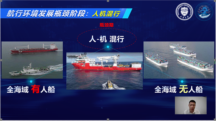 此外,天津大学海洋科学与技术学院助理研究员、博士后高邈在线上带来了“自主船沉浸式远程操纵与AR驾驶辅助研究”的技术汇报,介绍了海上航行环境智能感知、船舶远程操纵、AR辅助驾驶、船联网等方向的科研成果。