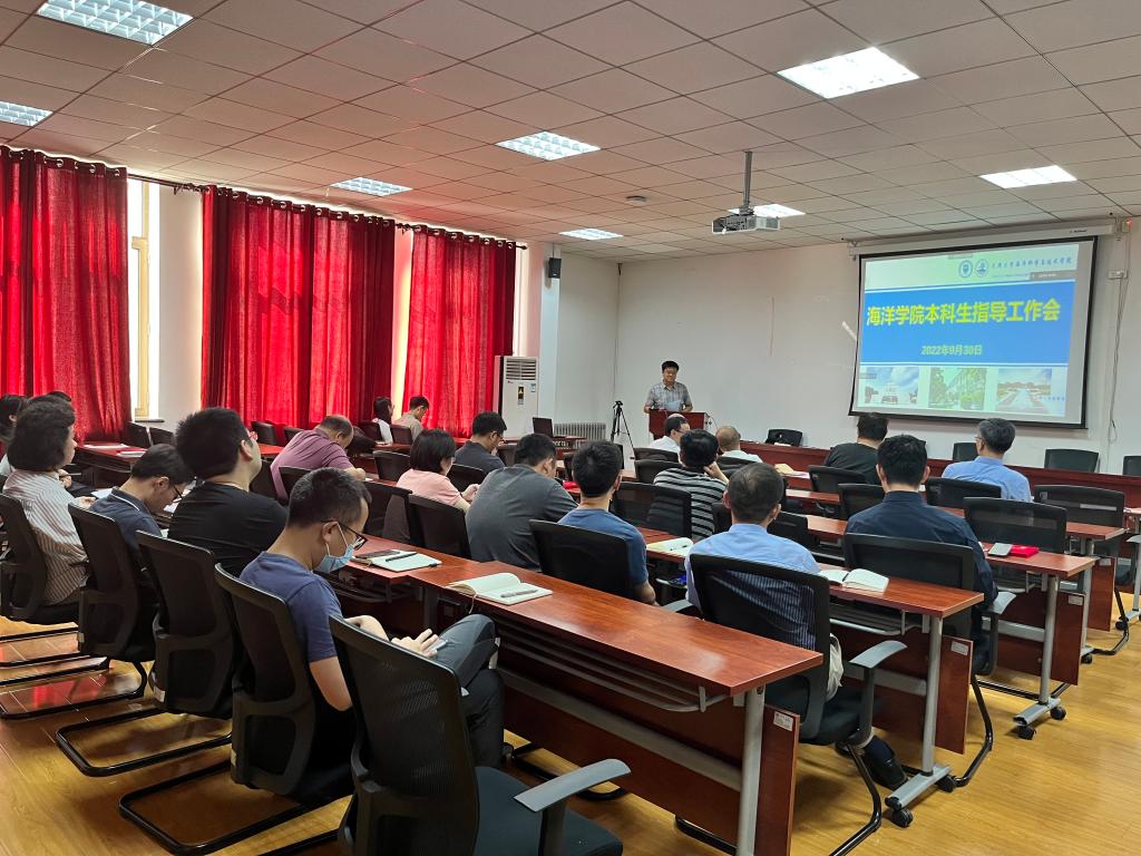 (通讯员 汪露 摄影 周亚鑫)9月30日下午,海洋学院在第八教学楼319会议室,以线上线下结合形式召开本科生指导工作会,学院院长翟京生,党委书记单小麟,副院长徐德刚、苏荣欣、巩乐与学院全体教职员工、部分学生代表一起参加了会议,会议由党委副书记靳楠主持。