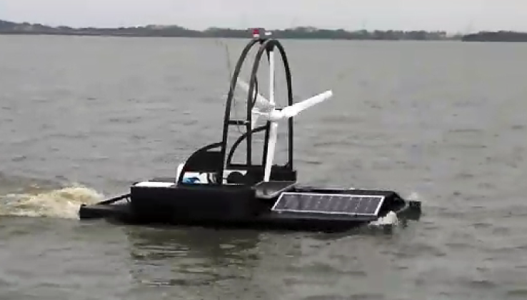 图5风光互补双体无人观测船针对海洋环境长期观测任务需求,研制以风能、太阳能为能源的长航时双体无人观测船。