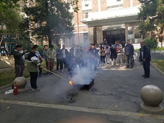 在消防安全培训中,弓保津向参加活动师生介绍消防知识要点,提醒大家要保持良好的消防安全习惯,从根源消除火灾隐患。同时,结合具体案例,向师生详细讲解疏散逃生知识、灭火器材使用方法。
