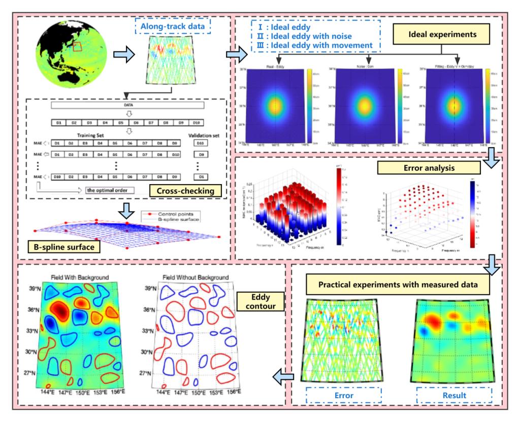 日前,天津大学海洋学院3I研究组师生在中尺度涡识别方面取得重要研究成果,基于卫星高度计海面高度异常沿轨数据,构建B样条曲面拟合模型,成功识别中尺度涡。该模型有助于解决传统的涡旋识别方法依赖网格化再分析数据,从而引入再取样误差的问题。该研究成果发表于国际遥感领域期刊《Remote Sensing》,题为:Oceanic Mesoscale Eddies Identification Using B-Spline Surface Fitting Model Based on Along-Track SLA Data。2022级硕士许洛川为第一作者,高邈讲师,张安民研究员为指导老师。