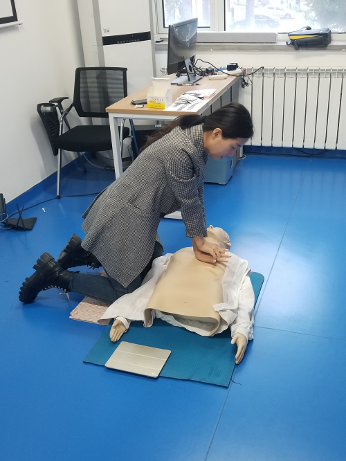 本次应急急救技能培训邀请了天津大学应急医学研究院培训导师孙倩进行了专业详细的讲授,主要培训内容有基本救护常识、心肺复苏操作流程、自动体外除颤器的使用方法、海姆立克急救手法等有关应急救护知识,利用人体模型、专业仪器等进行急救技能实操训练。