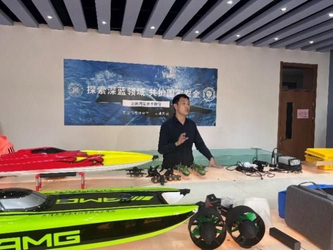 首先开始的科普活动环节,高邈重点围绕无人艇系统组成及工作原理,向师生讲解了无人艇的关键技术内容,如特型平台设计、复杂环境下的运动控制、通信技术等。通过生动形象地讲解和互动演示,同学们对无人艇技术有了更直观的认识。
