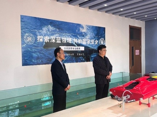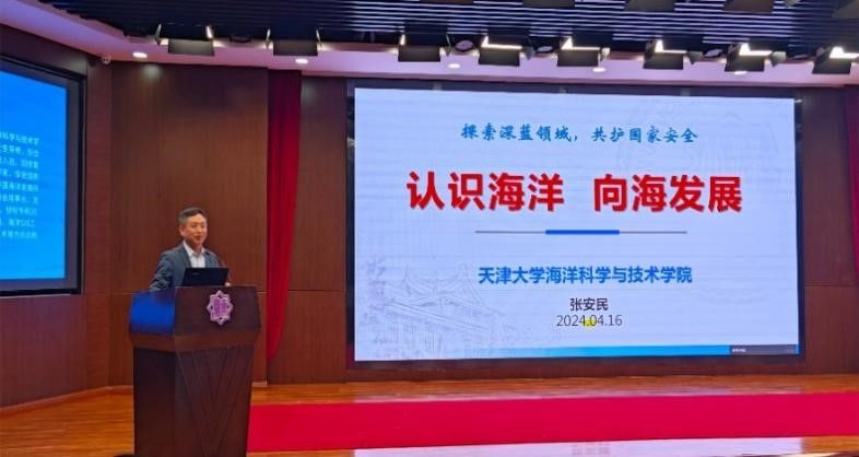 (通讯员 杨梦昕)2024年4月16日,天津大学海洋科学与技术学院与天津市南开中学,在南开中学北院校区共同举办了一场题为"探索深蓝领域,共护国家安全"的科普教育活动。南开中学党委书记李轶,党委副书记、校长刘浩,党委副书记、副校长王文昌,天津大学海洋学院党委副书记靳楠,海洋技术系张安民研究员、高邈副研究员出席活动。海洋学院与南开中学师生代表共同参加活动。
