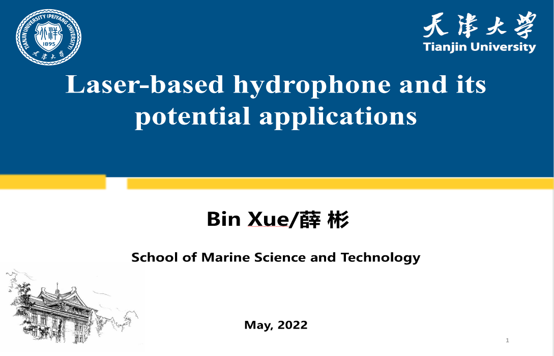 在特邀专家报告环节,海洋学院薛彬老师向参会师生作报告--《激光水听器及潜在应用》,并与参会老师和同学分享了在科研道路上的心得与体会。