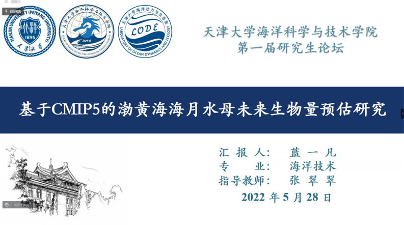在研究生报告环节,海洋学院2017级博士杨乐、2018级博士张雨侬、2019级博士宁鹏飞、2020级博士孙越龄、2021级博士陶全、2020级硕士王浩宇、2020级硕士王金鑫、2020级硕士蓝一凡分别从不同的研究方向做学术报告,并与参会师生进行交流和探讨。