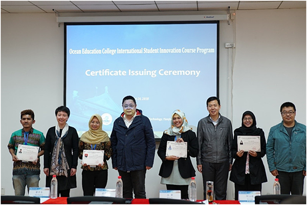 At this point, "Ocean Education College International Student Innovation Course Program " was concluded successfully. In these ten days, students attended three marine cognitive courses, five multidisciplinary marine frontier technology theory courses and experiment courses. They visited and practiced in the National Ocean Technology Center, National Ocean Information Center, Tianjin Maritime Surveying and Mapping Center and Tianjin Port. Besides, they had comprehended Tianjin traditional culture through visited the scenic spots in Tianjin and listened to the lecture of Chinese history and culture.