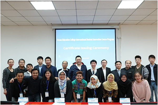 On October 24, 2018, under the framework of "China-ASEAN Smart Ocean Center", the closing ceremony of “Ocean Education College International Student Innovation Course Program” sponsored by School of Marine Science and Technology, Tianjin University and the summary report of this program was held in Room 319, Building No.8. Dean of the school of marine Zhai Jingsheng, Party Secretary, Ling Guowei, deputy party secretary, He Liqian, vice dean Wang Jun and Gong Le, director of the department of Marine technology Zhang Anmin and mamy teachers and students from the school attended the summary meeting and closing ceremony.