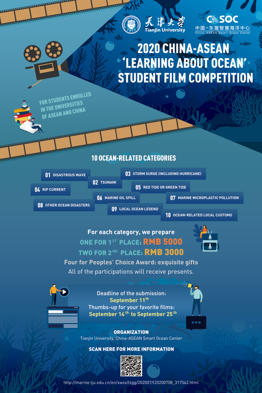 Based on the theme of this year's World Ocean Day, 'Innovation for a Sustainable Ocean', Student Film Competition (SFC) held by China-ASEAN Smart Ocean Center (CASOC) is now open for entries.