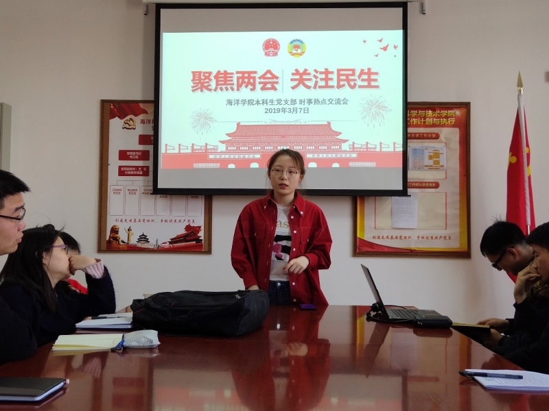 3月7日,海洋学院本科生党支部就2019两会热点召开分享交流会,支部全体党员和部分入党申请人参加,会前大家分别收看了两会现场直播和相关新闻。