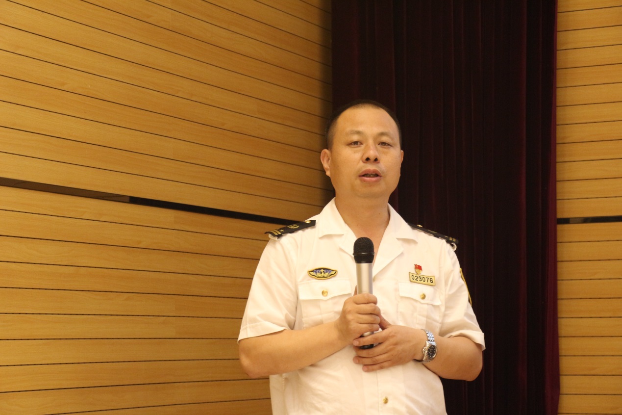 大沽口海事局政委文殿元以“蓝海情 强国梦”为主题,针对实现海洋强国建设目标、打造强大的海上力量与海事局的职责和执法领域之间的联系,以及在此大背景下大沽口海事局如何行使执法权、发挥监管效能、促进区域经济发展等方面内容娓娓道来。他强调工作中要发挥党组织战斗堡垒的强大作用,为此大沽口海事局牵头成立临港区域“党建联盟”,在“小支部大党建”的引领作用和“伴随廉政”的政治保障下,各项工作得以高质量开展。