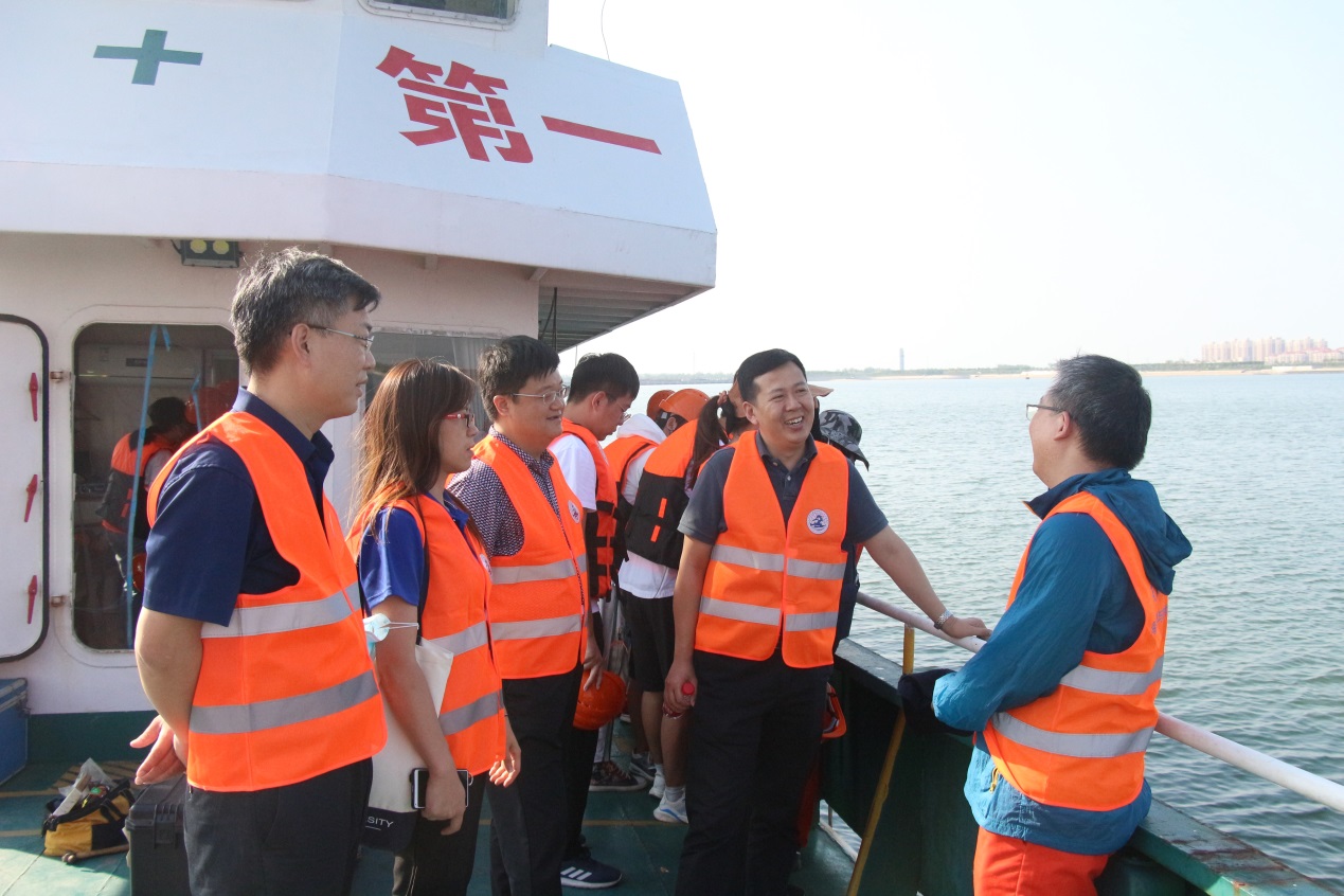 联合党日活动结束后,海洋学院党委书记凌国维、副书记靳楠、副院长徐德刚跟随师生一起来到实习船上参加出海实习。凌国维向带队老师详细了解了出海实习开展情况,查看了实习安全方面的相关保障,随后与同学们就实习过程中遇见的问题和困难进行了交流,叮嘱同学们在实习学习的同时,要严格遵守纪律要求,确保安全,圆满完成实习任务。