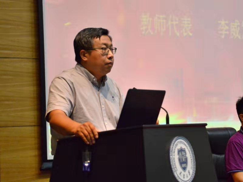 教师代表李威发言。他讲到,大学是新的起点,知识的庞杂、远超高中时代,需要同学们牢记三大“法宝”。首先,要明确目标,伴随着“第四次工业革命——智能化”的到来,海洋学科具有更高层次的人才需求,需要同学们确立明确的目标,在“国之重器”的研究领域孜孜探索。其次,要端正态度,学习从小处是为自己,为家庭而学,从大处是为社会,为中华之崛起而学。再次,要掌握方法,大学学习需要行之有效的学习方法,打好坚实基础,把握大好青春。