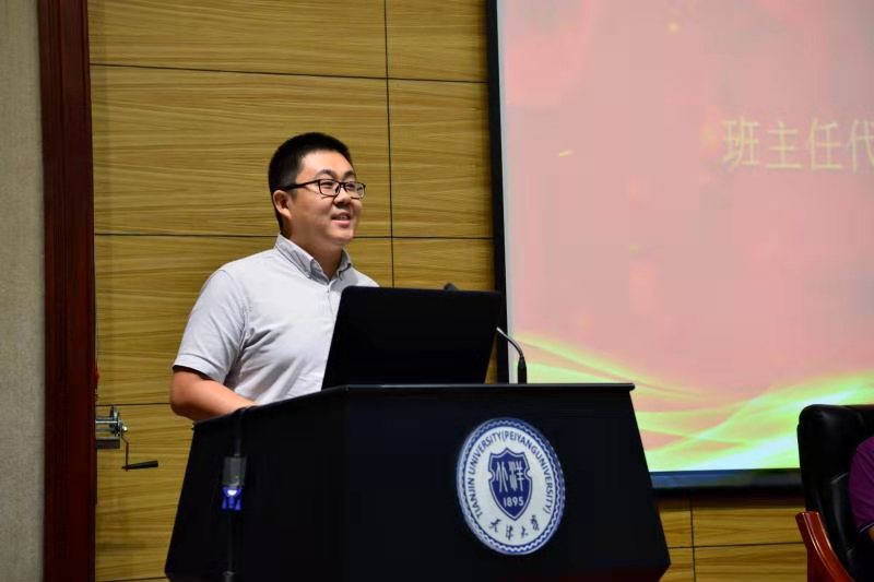 新生班主任代表田文杰发言。他讲到:作为班主任,会本着“传道、授业、解惑”的宗旨,守护同学们大学生活,并提出四点要求:第一,积极面对挫折的挑战,在战胜挫折的过程中成长。第二,是尽早树立明确的目标,选择自己人生的方向。第三,要自律,重视学习,形成良好的学习氛围;第四,要在科创活动中提升自我、超越自我。
