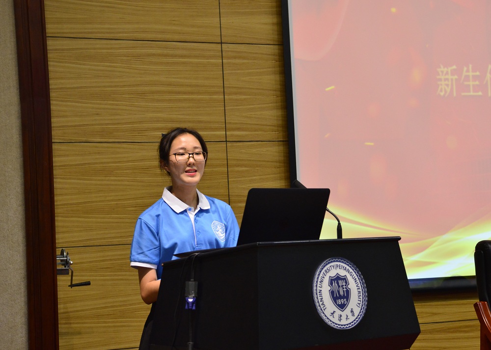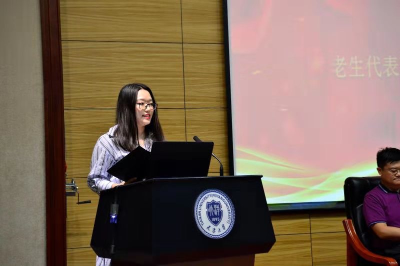 老生代表杨琳茜发言。杨琳茜分享了自身在协调主修、辅修、社团、学生工作上的经验,建议新生学会合理安排自己的生活,经过理性的思考,在已确立目标的指引下,做出选择。