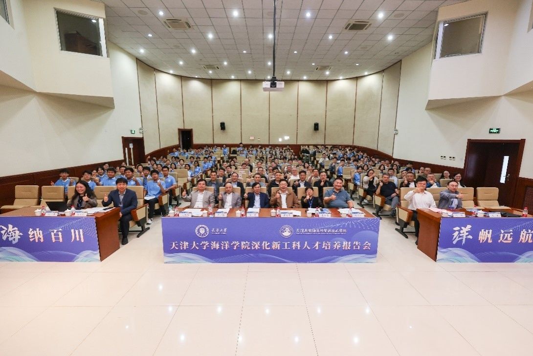 (通讯员:杨梦昕)为了落实教育强国和海洋强国战略,联合国内重要涉海领域企事业单位,共同推动人才培养、学生就业、人才引育等工作高质量发展,9月22日,海洋学院在天津大学卫津路校区科学图书馆二层报告厅召开深化新工科人才培养报告会。天津大学党委常委、宣传部部长杨欢,教务处副处长夏淑倩,研究生院学位办公室主任刘庆岭,合作办公室副主任柳丰林,以及海洋学院院长翟京生、党委书记单小麟出席会议,国内32家重要涉海领域企事业单位领导与专家受邀参加会议。会议由学院党委副书记靳楠主持。