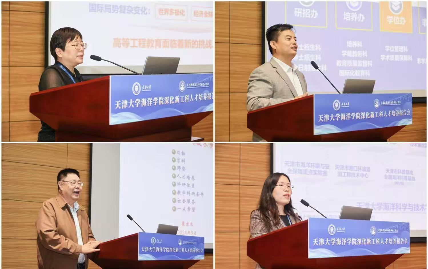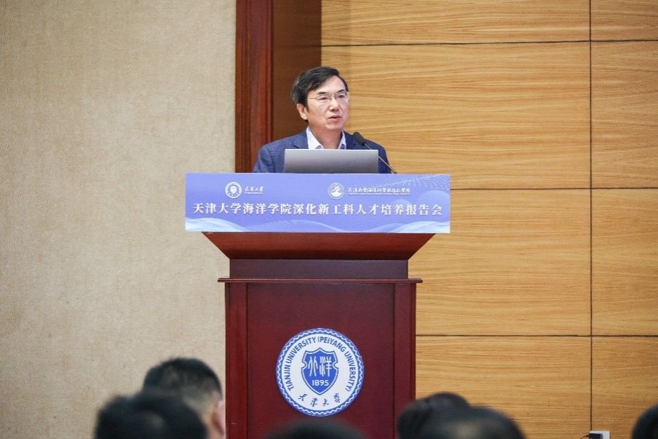 随后开始的主题报告环节,夏淑倩介绍了天津大学新工科教育改革进展情况以及取得的突出成绩,特别提到了海洋学院深入参与新工科建设,在校企合作、科教融汇发展方面所做的工作。刘庆岭带来了题为“创新引领,实践驱动”天津大学卓越人才培养路径探索的报告,介绍了学校在研究生教育教学改革方面取得的一系列成果,对于海洋学院在创新交叉学科研究组织形式,培养适合国家发展需求的人才方面做出的探索给予了充分肯定。翟京生介绍了海洋学院在学科建设、人才培养、师资梯队和科研体系等方面的工作进展,梳理了学院建院10年以来取得的成绩,提出了未来发展的目标方向。海洋学院副院长汪清做了学院新工科人才培养工作汇报,具体介绍了学院开展沉浸式、实践性、案例化实践教学,多举措多维度推动新工科人才培养的探索与经验。