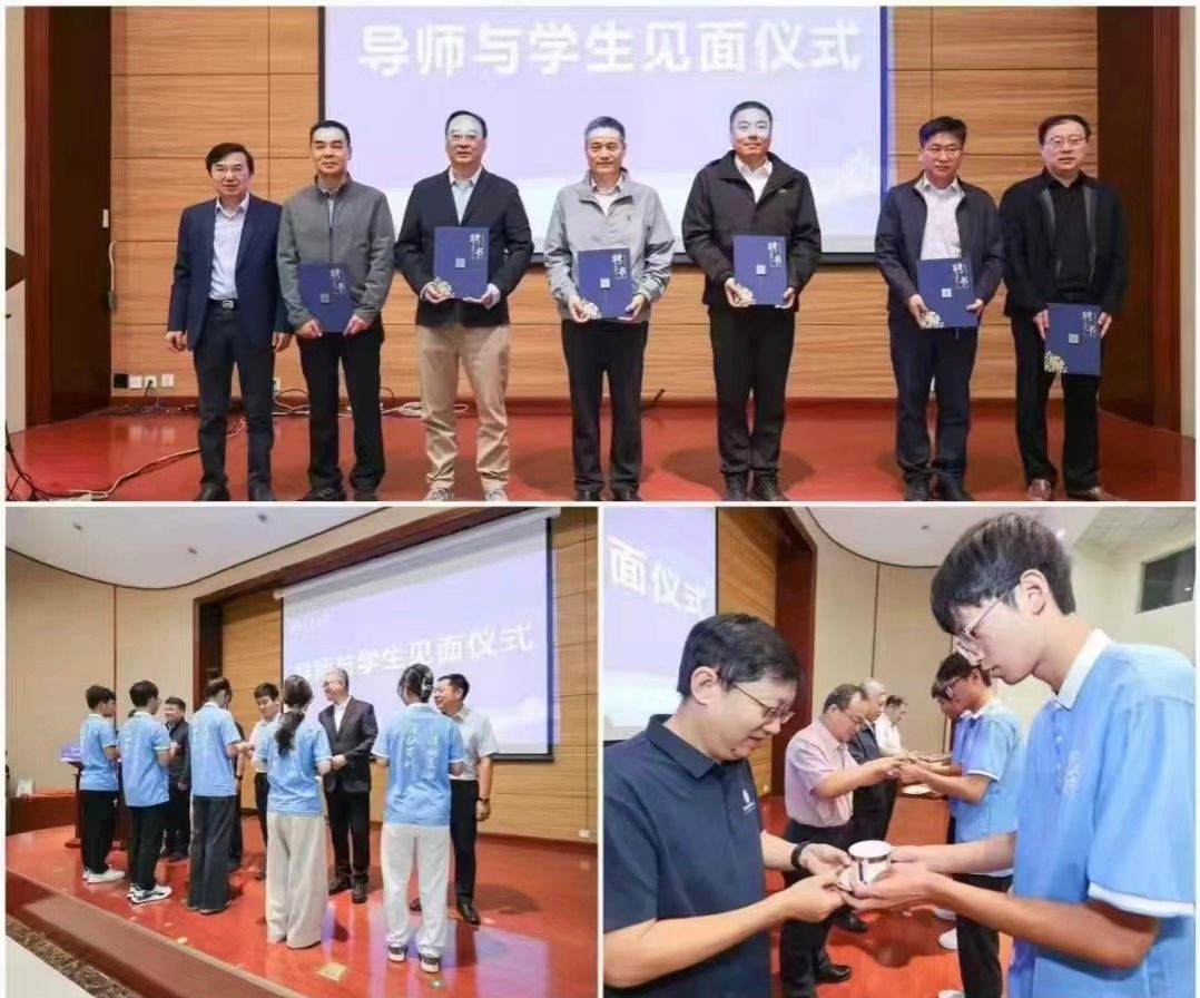 随后进行的导师与学生见面环节中,32家重要涉海领域企事业单位的领导与专家,作为海洋学院的合作导师依次上台。学生们向导师敬茶,校院领导为导师们颁发聘书并合影留念。