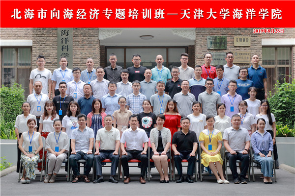 (通讯员 陈美珠 摄影 余荣照 国玮琦)2019年8月30日,为期5天的“北海市向海经济专题培训班”在天津大学海洋学院圆满落幕。北海市海洋产业科技园区管委会副主任陈国林、海洋学院副院长王军出席了结业仪式。来自北海市各机关单位、企事业单位的领导干部共45人参加培训并顺利结业。